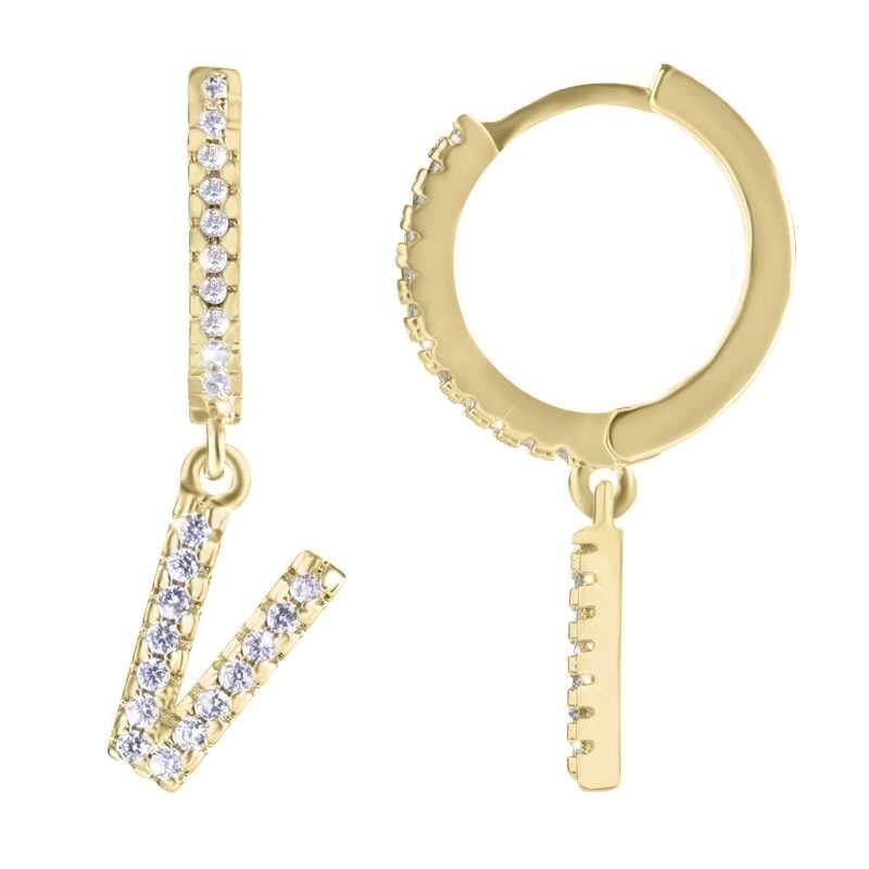 Kruhová pozlacená single náušnice "V" se zirkony Troli