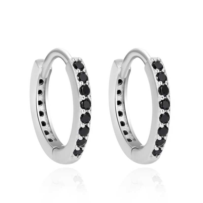 Stříbrné kruhové náušnice s černými zirkony AGT-E234KBK Agato