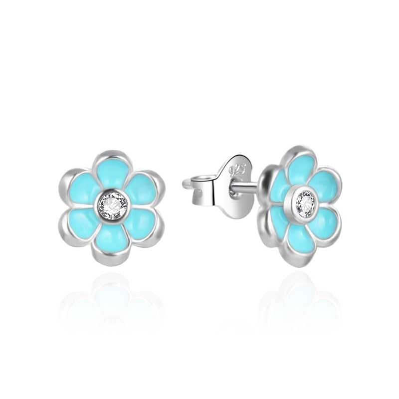Stříbrné náušnice s modrým smaltem Květina AGT-E232PT Agato