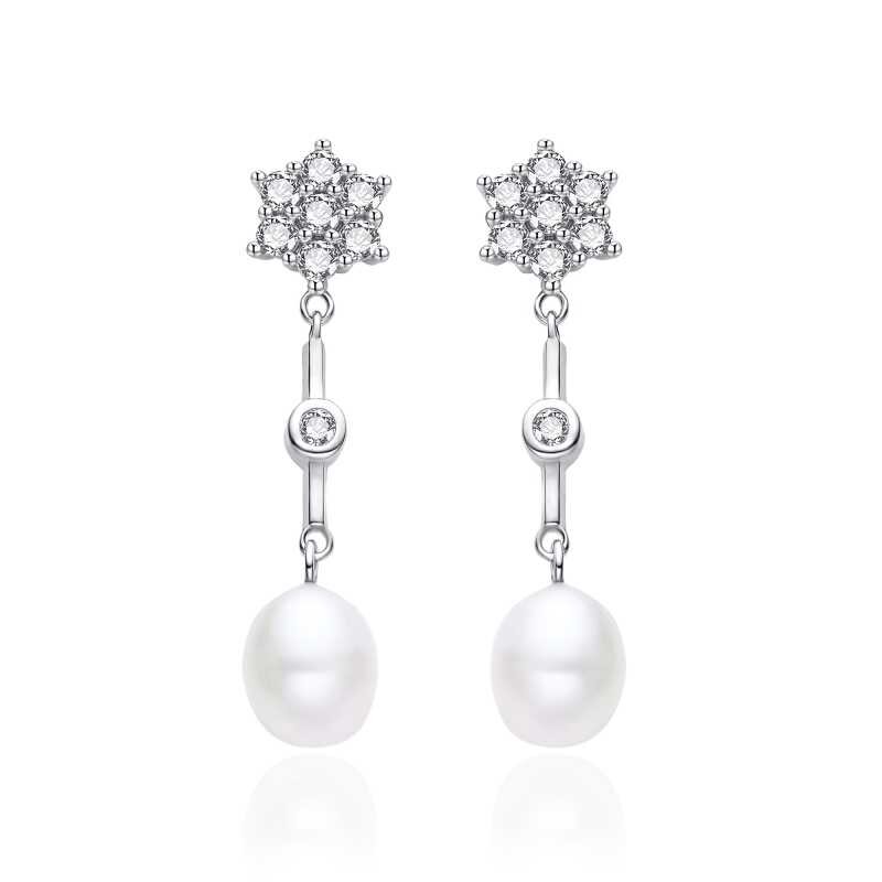 Stříbrné visací náušnice se zirkony a perlou AGT-E143PW-P Agato