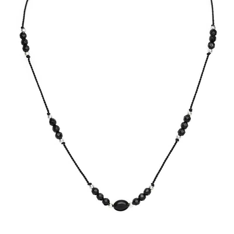 Šňůrkový náhrdelník s korálky z onyxu HE18K3S-BK Agato
