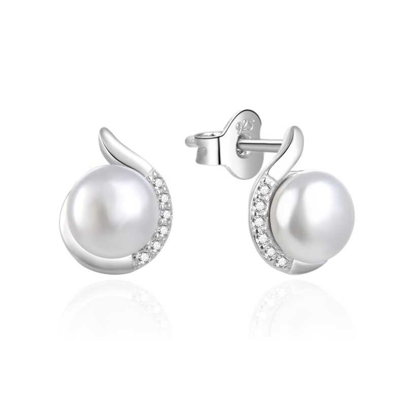 Elegantní stříbrné náušnice s perlou a zirkony AGT-E073PW-P Agato
