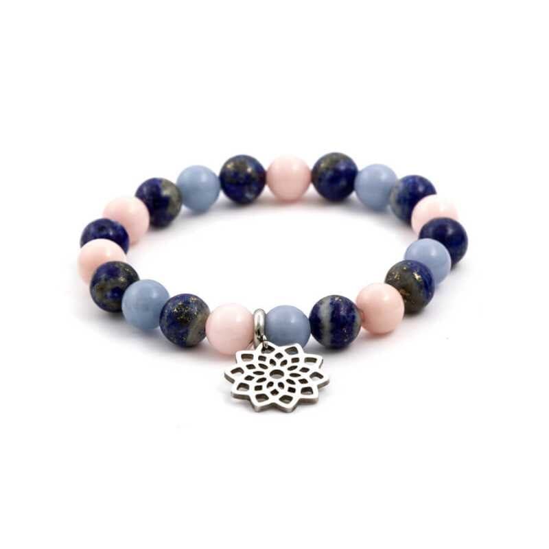 Náramek Agato spojuje krásu a sílu přírodních minerálních korálků, jako jsou růžový jadeit, modrý lapis lazuli a angelit. Tento elegantní šperk se díky pružné gumičce pohodlně nosí a jeho délka 17 cm se přizpůsobí každému zápěstí. Kromě estetického vzhledu nabízí také léčivé účinky, které podpoří...