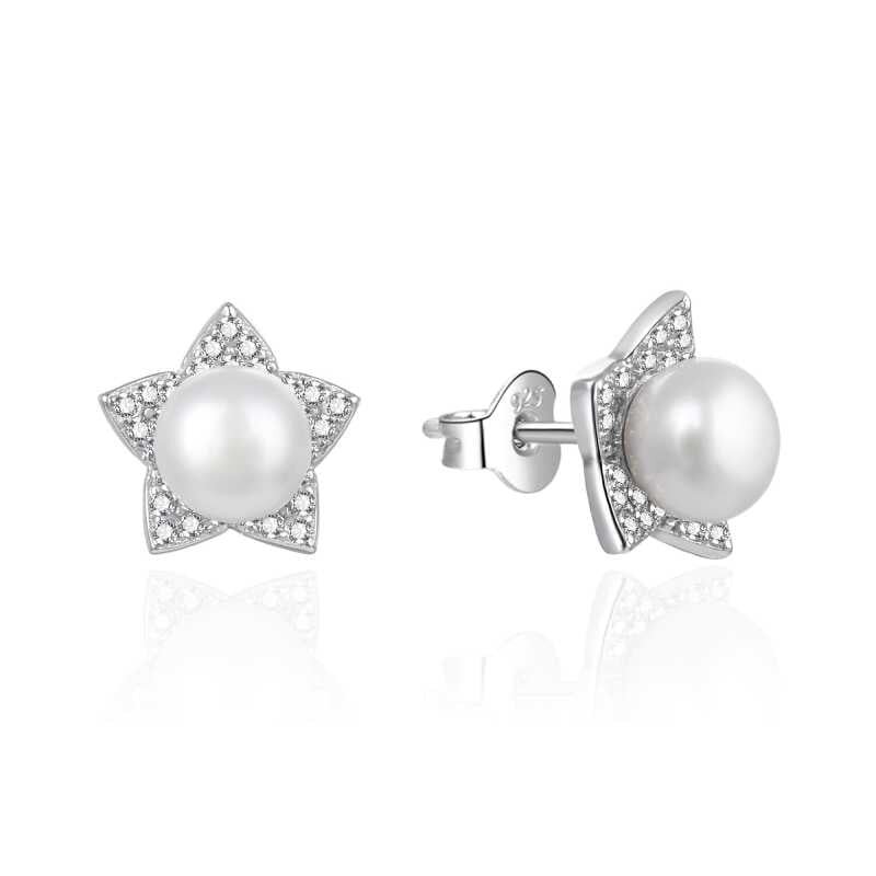 Originální stříbrné náušnice s perlou a zirkony AGT-E086PW-P Agato