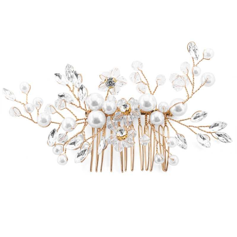 Nádherný pozlacený hřeben do vlasů s kamínky a perlami Troli
