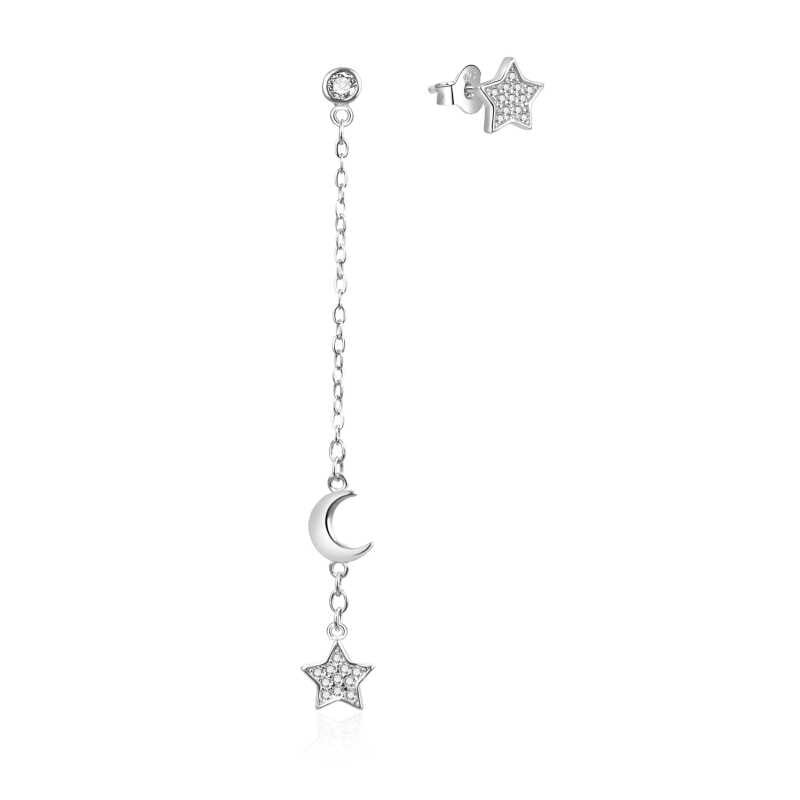 Asymetrické náušnice značky Agato kombinují eleganci a moderní design, přičemž jsou vyrobeny z kvalitního sterlingového stříbra. Rhodiovaný povrch zaručuje dlouhotrvající lesk a minimalizuje alergické reakce. Motiv hvězdy a měsíce doplňují třpytivé zirkony, které dodávají šperkům jiskru. S délkou...