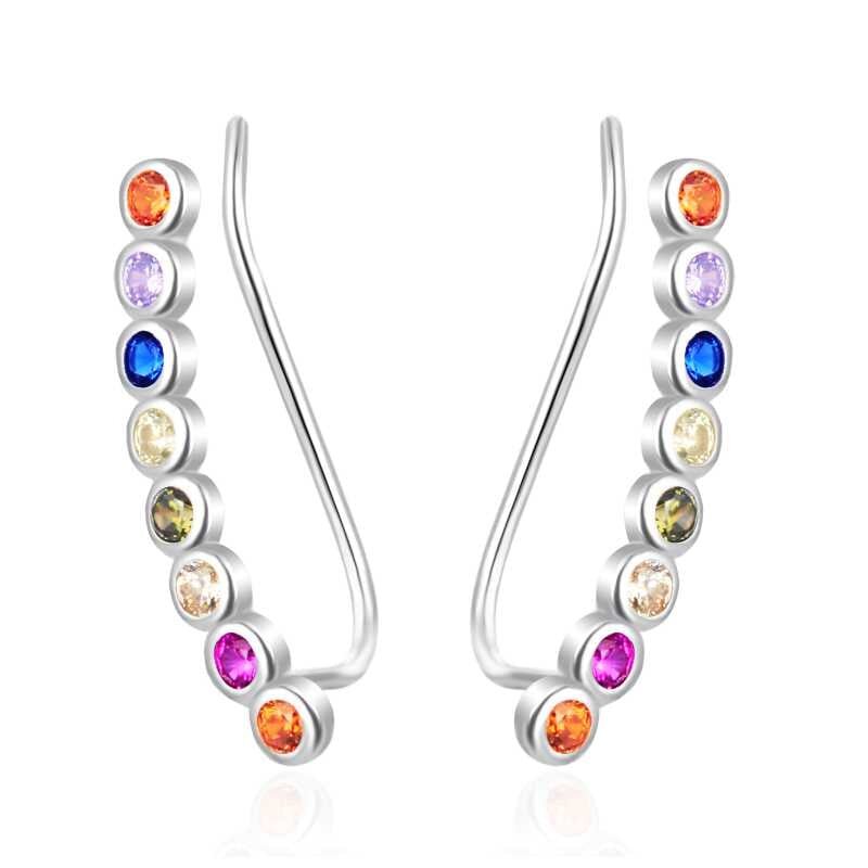 Podélné stříbrné náušnice s barevnými zirkony AGT-E027VC Agato