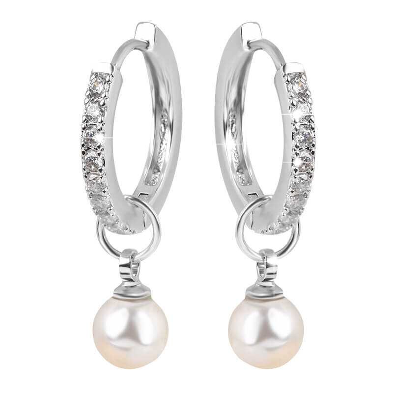 Půvabné kruhové náušnice s krystaly a perlou 2v1 VREPE003SI Troli
