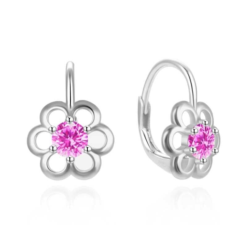 Stříbrné kytičkové náušnice s růžovým zirkonem AGT-E225LP Agato