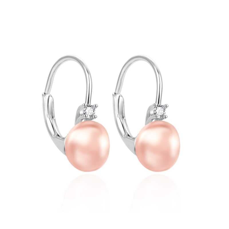 Elegantní stříbrné náušnice s růžovými perlami AGT-E263LW-PPI Agato