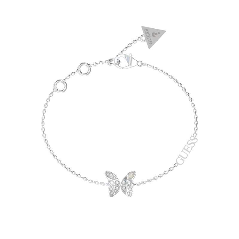 Elegantní fashion náramek od značky Guess je vyroben z vysoce kvalitní oceli a přináší unikátní design s jemným motýlkem, který okouzlí každého. Čiré zirkony dodávají náramku oslnivý třpyt, zatímco zdobný název značky na řetězovém provedení podtrhuje jeho jedinečnost. Zapínání na karabinku zaručuje snadné nošení. Tento náramek je ideálním doplňkem pro oživení jakéhokoli outfitu.