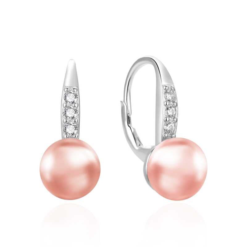 Půvabné stříbrné náušnice s růžovou perlou AGT-E233L-PPI Agato