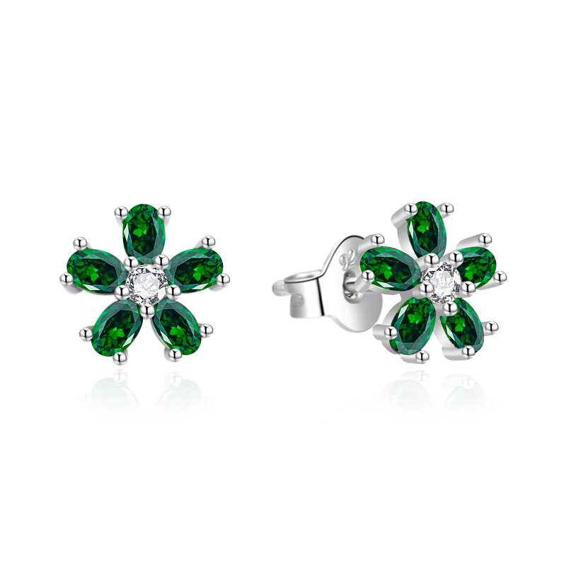 Stříbrné náušnice Kytičky se zelenými zirkony AGT-E243PGR Agato