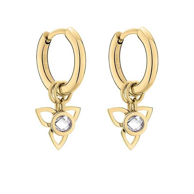 Dámské náušnice značky Tamaris kombinují kvalitní ocel s elegantním pozlacením žlutým zlatem, což přináší nádech luxusu. Nadčasové kruhy jsou obohaceny o odnímatelné přívěsky s květinovým motivem a čirým zirkonem, které umožňují variabilitu a osobitý styl. S délkou 1,9 cm a průměrem kruhu 0,8 cm se skvěle hodí k různým outfitům a dodají každému vzhledu šarm.