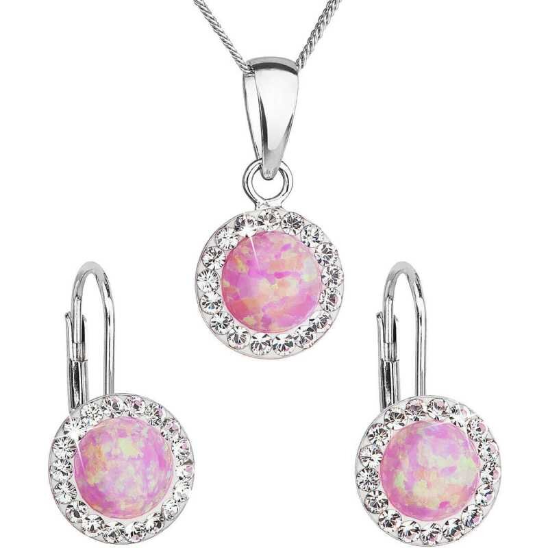 Třpytivá souprava šperků s krystaly Preciosa 39160.1 & light rose s.opal (náušnice, řetízek, přívěsek) Evolution Group