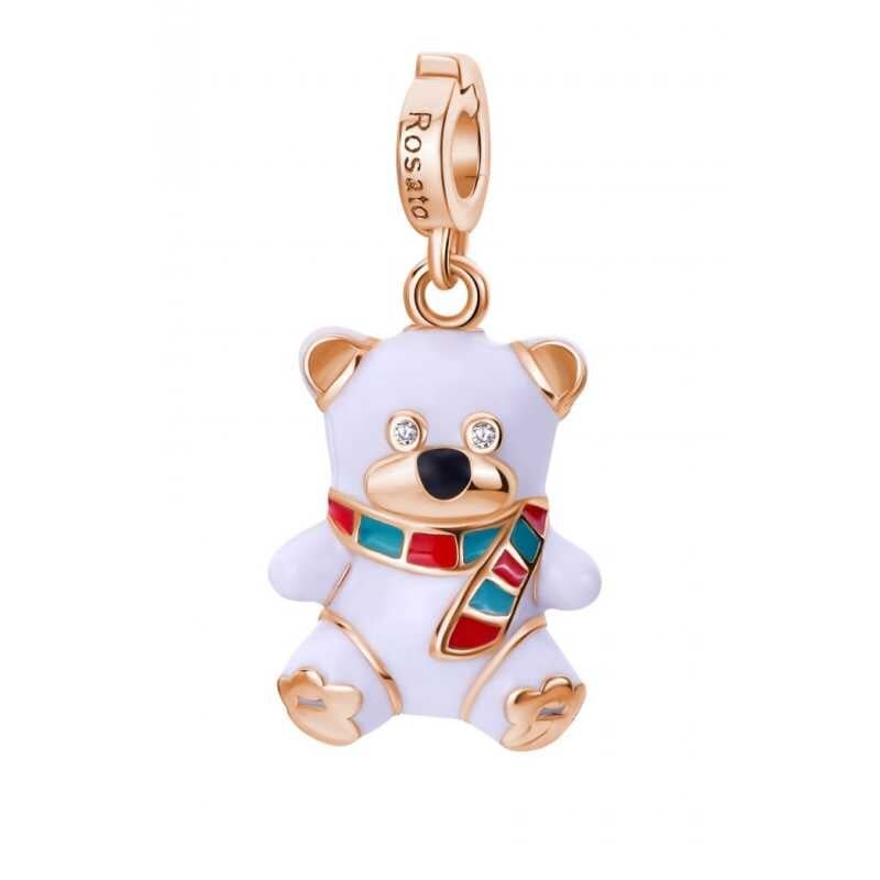Překrásný dámský přívěsek od renomované italské značky Rosato v sobě spojuje eleganci a hravost. Vyrobený z kvalitního stříbra a pozlacený růžovým zlatem, je zdoben roztomilým Vánočním medvídkem s bílým, červeným a modrým smaltem. Třpytivé kubické zirkony v očích dodávají šperku jedinečný šarm....