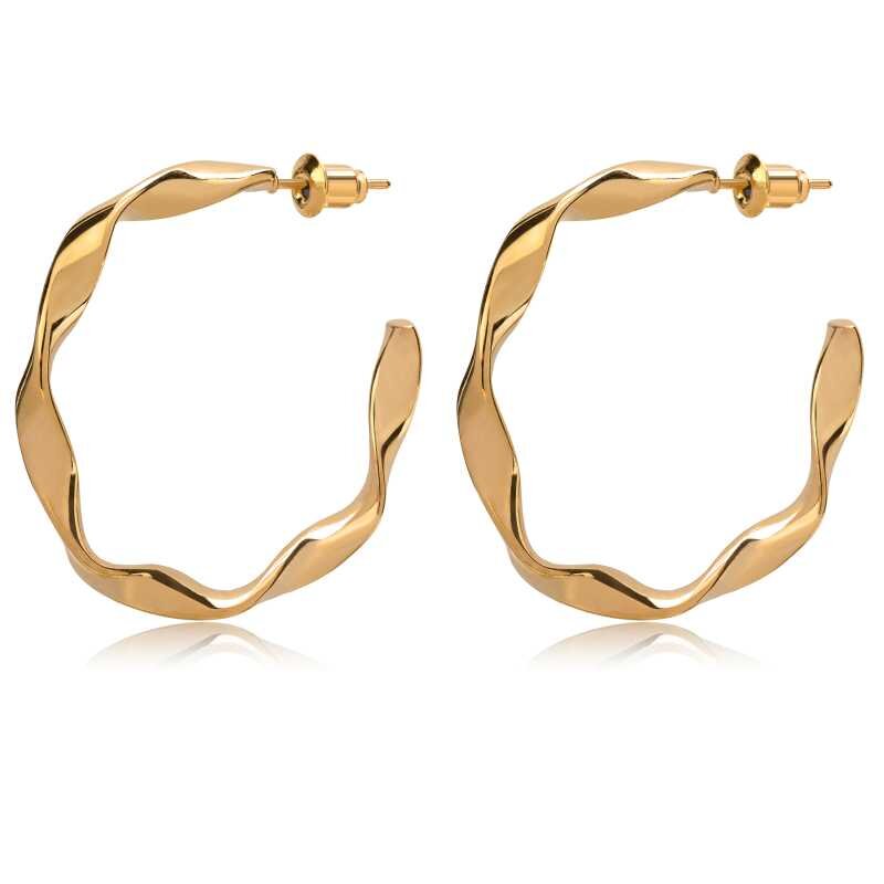 Elegantní dámské náušnice značky Troli přinášejí dokonalou kombinaci stylu a kvality. Vyrobeny z odolné oceli a pozlacené žlutým zlatem, tyto náušnice v oblíbeném kruhovém designu s jemným kroucením osloví každou ženu, která si potrpí na detail. Klasické zapínání na puzetku zajišťuje komfort při nošení. Dopřejte si šperk, který podtrhne vaši osobnost a skvěle doplní každý outfit.