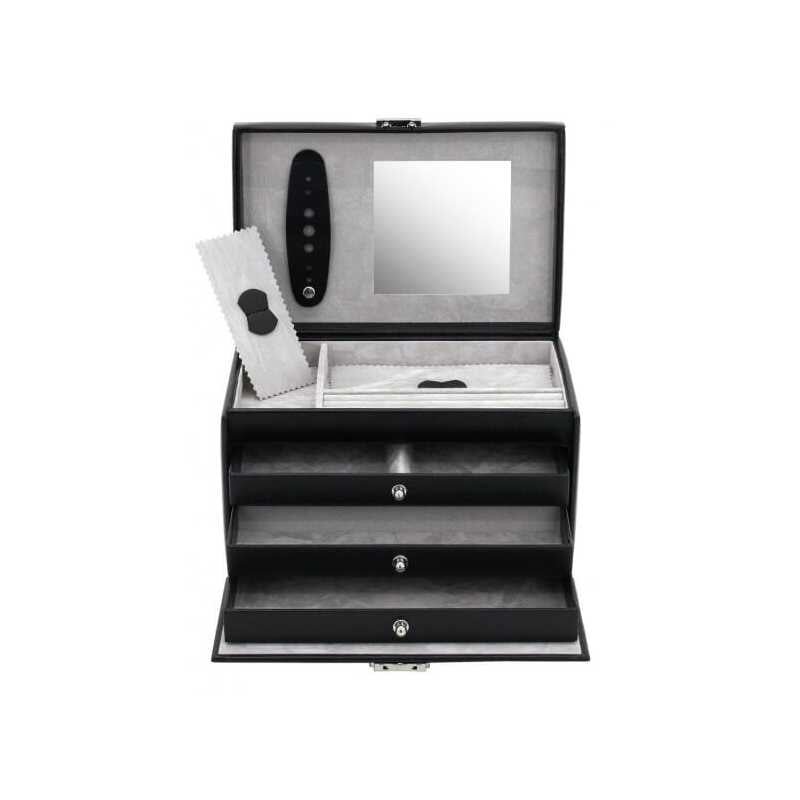 Klasická šperkovnice značky Friedrich Lederwaren v elegantním černém provedení je ideálním řešením pro uložení vašich cenností. S čtyřmi patry nabízí dostatek prostoru pro všechny vaše šperky. Praktické zrcátko ve víku usnadní výběr dokonalého doplňku. Udržujte své šperky v bezpečí a uspořádané s touto stylovou šperkovnicí, která kombinuje funkčnost s nadčasovým designem.