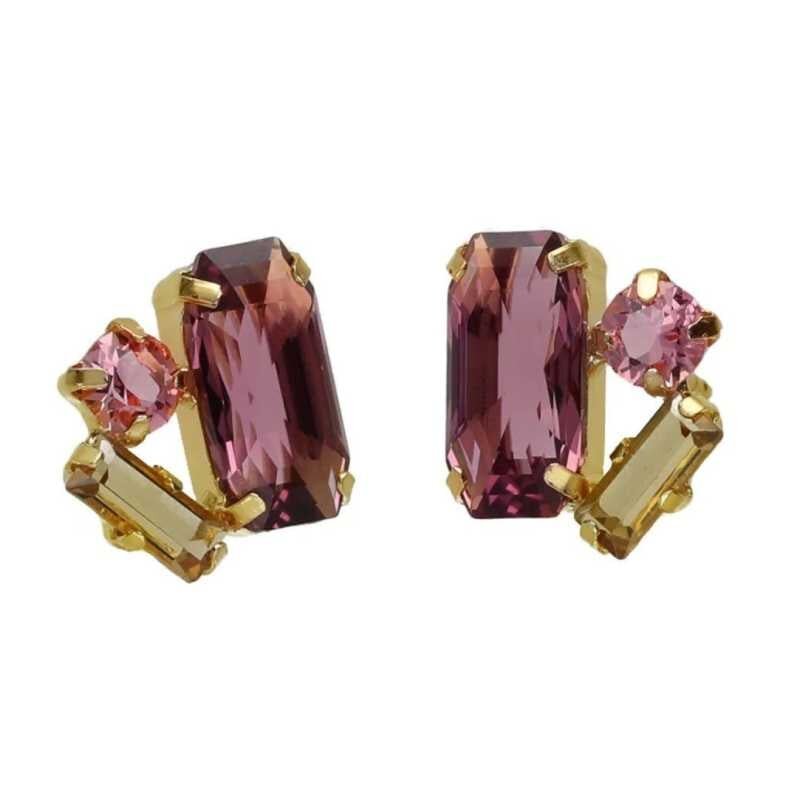 Náušnice od značky Victoria Cruz jsou elegantním doplňkem, který zvýrazní vaši jedinečnost. Vyrobené ze sterlingového stříbra a pozlacené 18karátovým žlutým zlatem, skvěle ladí s dominantním vínovým krystalem a jemnými růžovými a žlutými akcenty. S rozměry 1,1 x 1,3 cm a praktickým zapínáním na puzetku, tyto náušnice se stanou vaším nepostradatelným šperkem na každou příležitost.