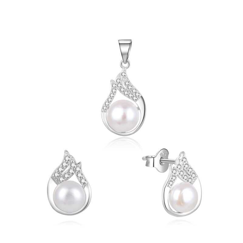 Elegantní stříbrná souprava šperků s pravými perlami AGSET220PL (přívěsek, náušnice) Beneto