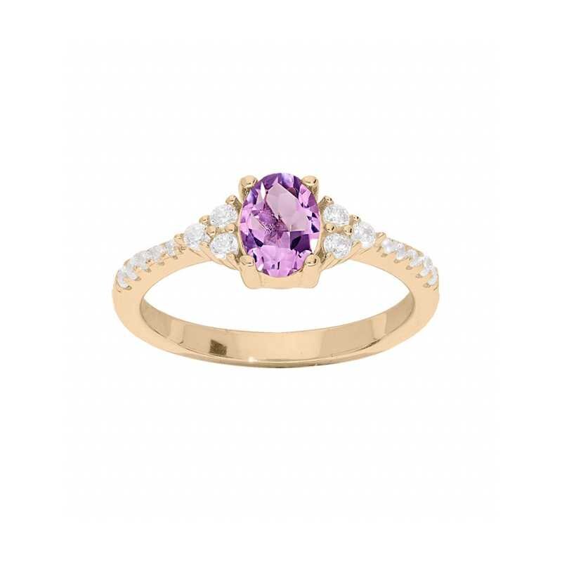 Krásný pozlacený prsten s ametystem a zirkony PO/SRC0203AM Troli / Obvod: 52 mm - 52 mm