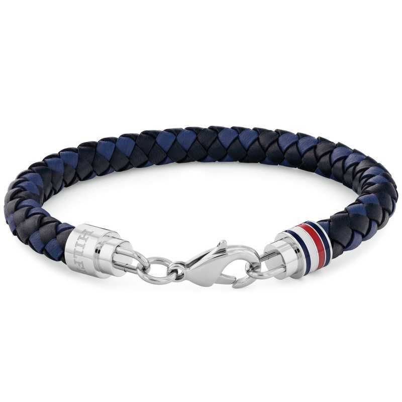 Elegantní náramek pro muže od značky Tommy Hilfiger spojuje proplétanou modrou a černou kůži s kvalitní ocelí. Délka 19 cm a praktické zapínání na karabinku zajišťují pohodlné nošení. Ikonická trikolora v barevném smaltu dodává náramku osobitý styl, který podtrhne vaši jedinečnost. Vhodný pro každou příležitost, tento módní doplněk skvěle doplní váš outfit.
