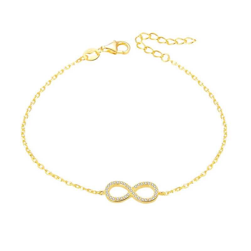Náramek značky Beneto představuje dokonalou kombinaci elegance a symboliky. Vyrobený ze stříbra a pozlacený žlutým zlatem, náramek zdobí motiv nekonečna s oslnivými čirými zirkony. S nastavitelnou délkou 17 - 20 cm se přizpůsobí každému zápěstí. Tento nadčasový šperk nejenže skvěle doplní váš outfit, ale také vyjadřuje trvalou lásku a spojení. Ideální volba pro každou příležitost.