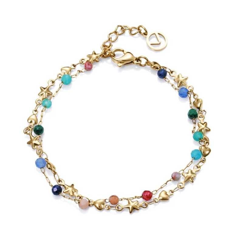Dámský náramek od značky Viceroy spojuje eleganci a hravost. Vyrobený z kvalitní oceli a pokovený žlutým PVD zlatem, tento šperk se pyšní dvojitým provedením a je zdoben barevnými korálky z přírodních kamenů. Drobné srdíčkové a hvězdičkové symboly přidávají na půvabu. S délkou 17,5 cm a možností...