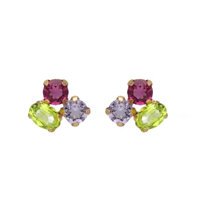 Elegantní náušnice značky Victoria Cruz jsou vyrobeny z kvalitního stříbra a pozlacené 18karátovým žlutým zlatem, což jim dodává jedinečný lesk. Barevné krystaly se nádherně třpytí a oživí každý outfit. S rozměry 1 x 1 cm a praktickým zapínáním na puzetku se nemusíte obávat jejich ztráty. Tyto šperky představují dokonalou volbu pro každou příležitost, kdy chcete vyniknout.