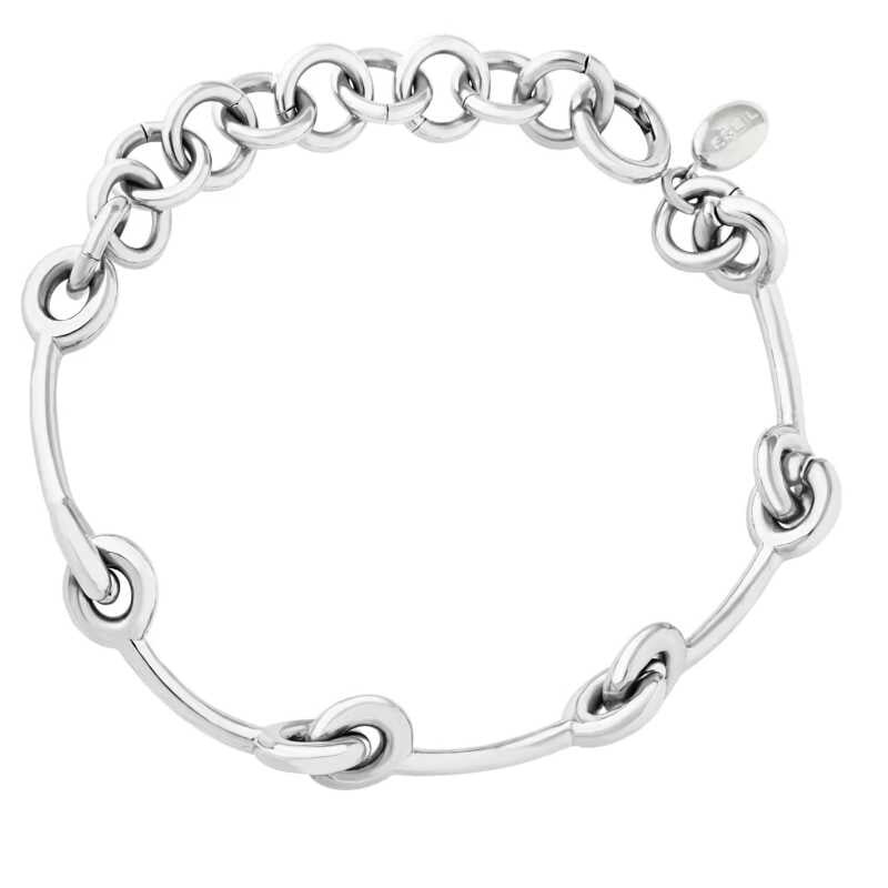Elegantní dámský náramek značky Breil přináší dokonalou kombinaci moderní estetiky a kvalitního zpracování. Vyroben z odolné oceli, jeho design se vyznačuje jemnými články ve tvaru uzlů, které dodávají šarm a sofistikovanost. S délkou 15 cm a možností prodloužení až o 6 cm se snadno přizpůsobí...