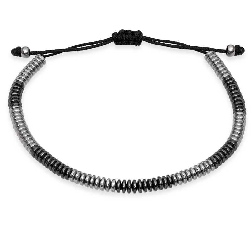 Elegantní náramek značky Troli spojuje moderní design s klasickými prvky. Základem je černá textilní šňůrka, která je ozdobena úzkými ocelovými korálky, čímž vytváří stylový a minimalistický vzhled. Díky nastavitelné délce (max. 25 cm) se skvěle přizpůsobí každému zápěstí. Tento unisex náramek osloví všechny, kteří hledají nadčasový a univerzální doplněk do každodenního outfitu.