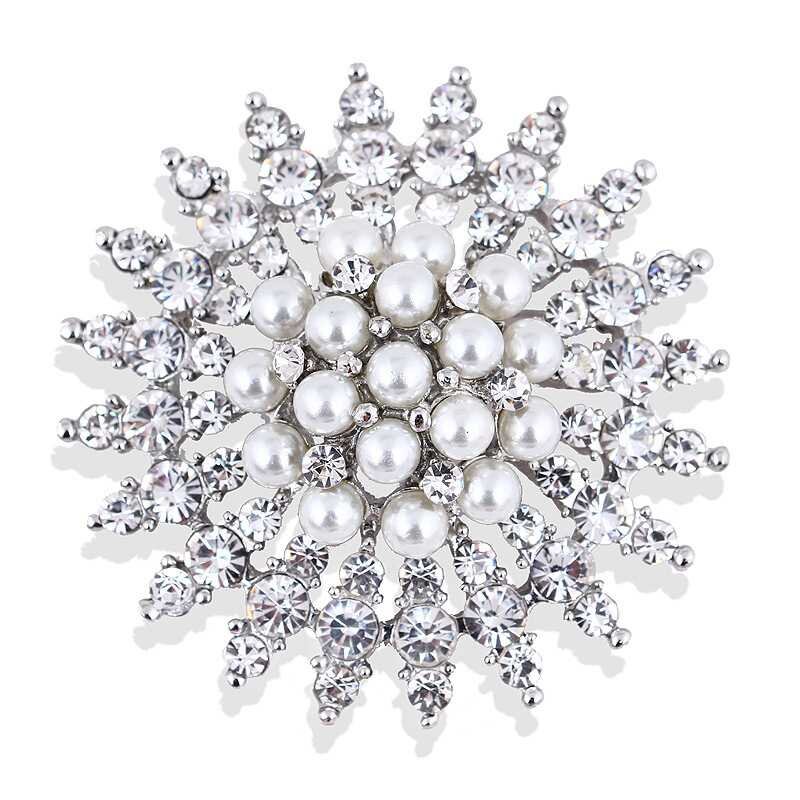 Třpytivá brož s krystaly a umělými perlami Silver Troli