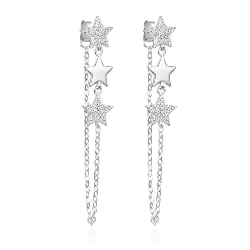 Dlouhé náušnice značky Agato jsou elegantním doplňkem, který zaručuje okouzlující vzhled. Vyrobeny z kvalitního stříbra s rhodiovaným povrchem, minimalizují alergické reakce a zachovávají trvalý lesk. Hvězdičkové ozdoby a třpytivé zirkony dodávají náušnicím jedinečný šarm. S rozměry 5 x 0,8 cm a praktickým zapínáním na puzetku se stanou ideálním doplňkem pro každou příležitost.