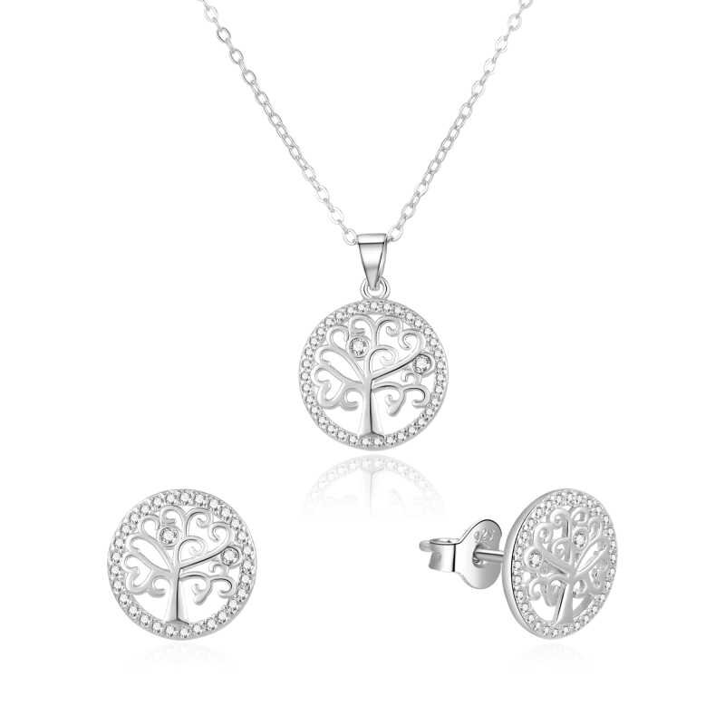 Stříbrná souprava šperků strom života AGSET213R (náhrdelník, náušnice s puzetkou) Beneto