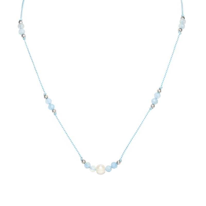 Šňůrkový náhrdelník s akvamarínem a říční perlou HE06K3S-LB Agato