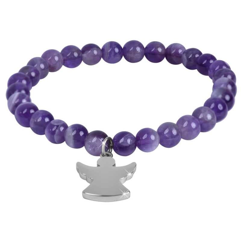 Korálkový náramek z ametystu s andílkem Troli / Délka: 18 cm