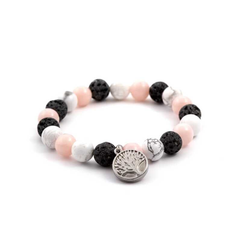 Náramek Agato spojuje minerální korálky s ocelí a nabízí elegantní design, který osvěží každý outfit. Složený z bílého howlitu, růžového jadeitu a šedé lávy, přináší nejen krásu, ale také pozitivní energii. Díky pružné gumičce se náramek pohodlně nosí. Symbol stromu života na přívěsku posiluje...