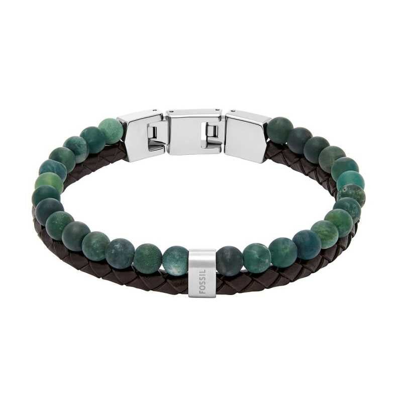 Náramek značky Fossil představuje dokonalou kombinaci elegance a stylu pro moderní muže. Spojení hnědého koženého náramku a korálkového náramku s unikátními zelenými skleněnými korálky dodává každému outfitu šmrnc. S délkou 21,5 cm a praktickým zapínáním na ocelovou sponu je tento doplněk nejen...