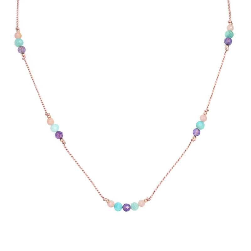 Šňůrkový náhrdelník s amazonitem, ametystem a angelitem HE24K3RG-LP Agato