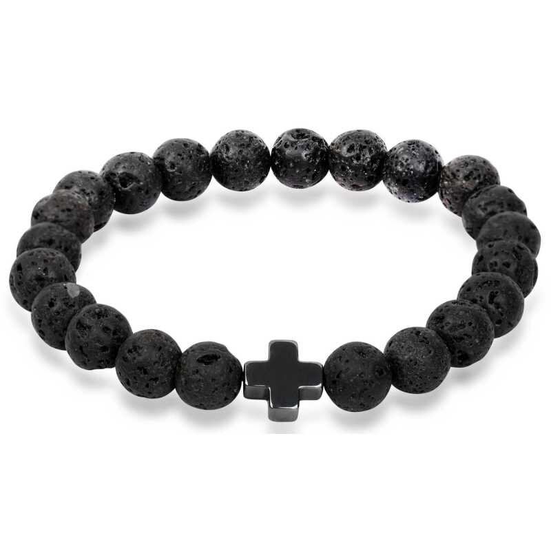 Pánský náramek značky Troli spojuje eleganci a styl díky svému pružnému provedení, které se perfektně přizpůsobí vašemu zápěstí. Složený z unikátních lávových kamenů, každý korálek nese originální strukturu, což zaručuje jedinečnost každého kusu. Ocelový křížek dodává náramku moderní vzhled, čímž se stává ideálním doplňkem pro váš fashion styl.