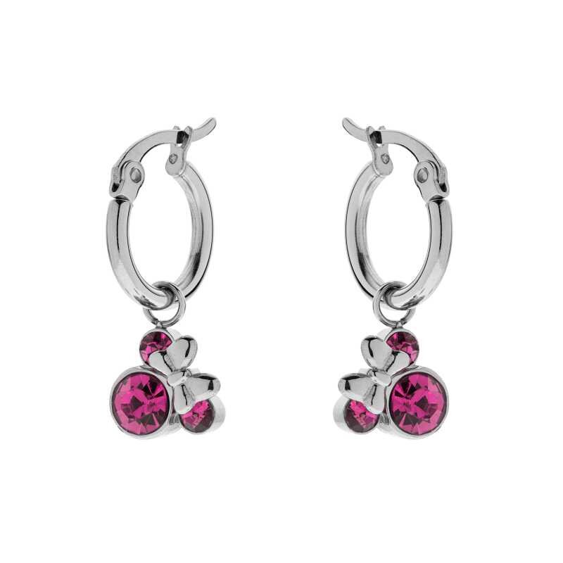 Elegantní náušnice značky Disney přinášejí do vašeho šperkovníku kouzlo oblíbené myšky Minnie. Vyrobené ze stříbra, vynikají nadčasovým kruhovým designem a jemnými přívěsky, které jsou osazeny růžovými kubickými zirkony. Bezpečnostní zapínání zajišťuje, že se nemusíte obávat jejich ztráty. Tyto náušnice jsou ideální volbou pro každou příležitost, kdy chcete zazářit.