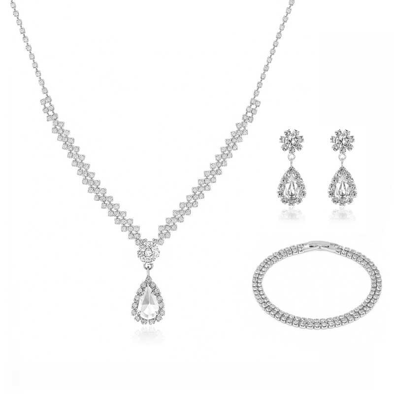 Dámská sada šperků s čirými zirkony Kapka (náhrdelník, náramek, náušnice) Troli