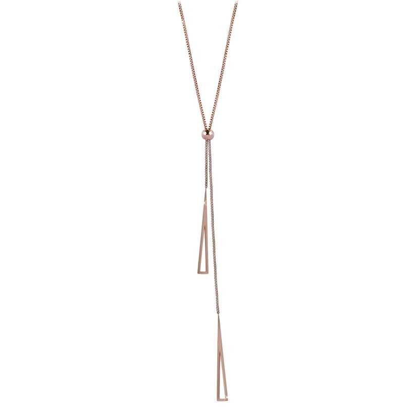 Elegantní náhrdelník značky Troli z růžově pozlacené oceli přináší dokonalou kombinaci stylu a versatility. S efektními trojúhelníkovými přívěsky, jejichž rozměr činí 4 x 0,5 cm, můžete snadno přizpůsobit délku šperku díky posuvnému korálku. Celková délka náhrdelníku dosahuje 52 cm s možností prodloužení o 5 cm. Tento designový kousek skvěle doplní Váš outfit a osvěží Váš dekolt.