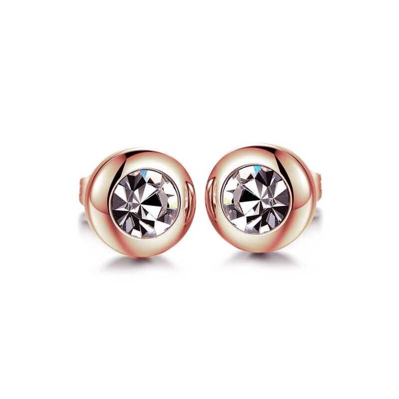 Elegantní náušnice od značky Troli v růžově pozlacené oceli dodají vašemu vzhledu šarm a sofistikovanost. Třpytivý čirý krystal v jejich středu přitahuje pozornost a dokonale se hodí k různým stylům. Klasické zapínání na puzetku zajišťuje pohodlné nošení po celý den. Tyto drobné šperky jsou ideální volbou pro každou příležitost, ať už se chystáte do práce, nebo na večerní událost.