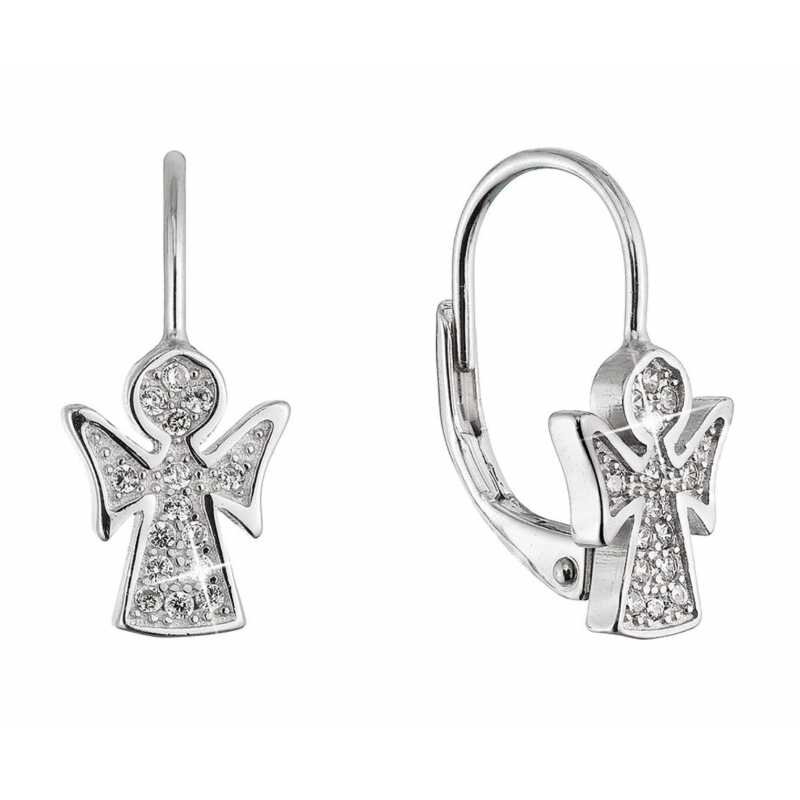 Něžné stříbrné náušnice Andílek se zirkony 11543.1 Evolution Group
