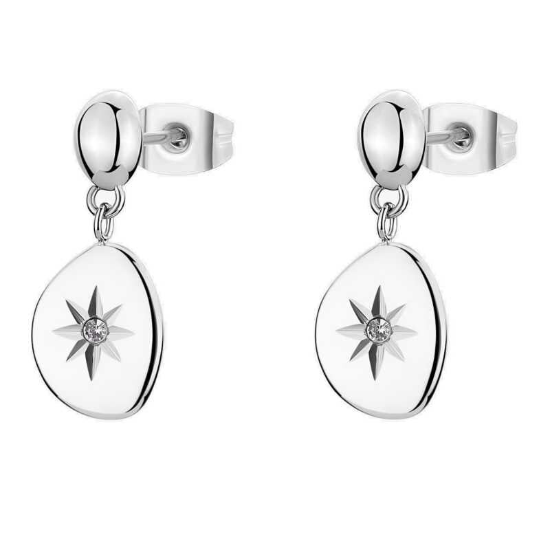 Elegantní visací náušnice značky Brosway dodají každému outfitu šmrnc. Vyrobené z kvalitní oceli, tyto náušnice spojují stylové pecky s jemným přívěskem osazeným čirým krystalem. Délka 1,8 cm a bezpečnostní zapínání na puzetku zaručují pohodlí a bezpečnost nošení. Oživte svůj vzhled a vyjádřete...