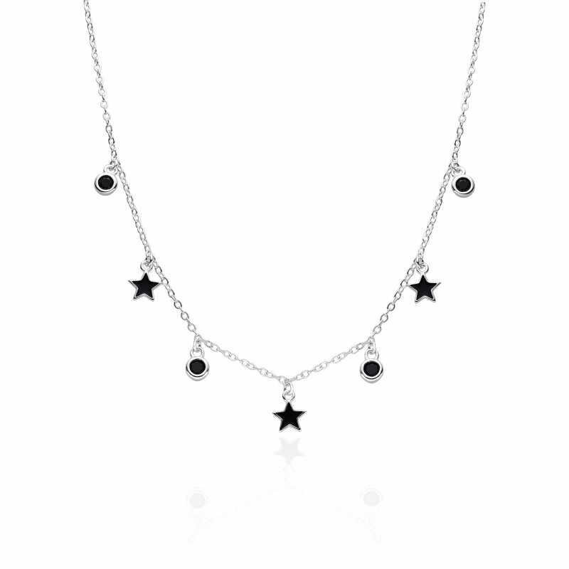 Elegantní náhrdelník značky Agato přináší jedinečnou kombinaci stylu a kvality. Vyroben ze stříbra ryzosti 925/1000, jeho rhodiovaný povrch zaručuje dlouhotrvající lesk a minimalizuje alergické reakce. Motiv hvězdiček s černým smaltem a drobné přívěsky osazené černými zirkony dodávají náhrdelníku...