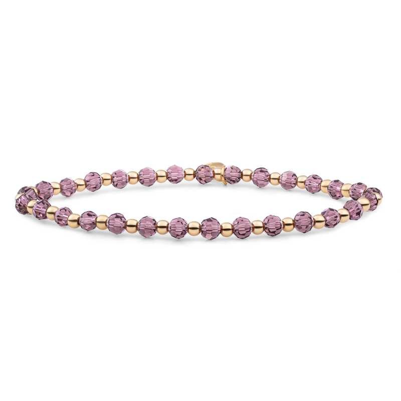 Náramek od značky Sparkling Jewels přináší elegantní spojení pozlacených kuliček a fialových korálků z růženínu, které dodávají šperku jedinečný charakter. S průměrem korálků 0,3 cm a délkou 17,5 cm je náramek navržen tak, aby se pohodlně přizpůsobil vašemu zápěstí díky pružné gumičce. Vytvořte si osobitý styl a nechte se okouzlit tímto šperkem, který podtrhne vaši jedinečnost.