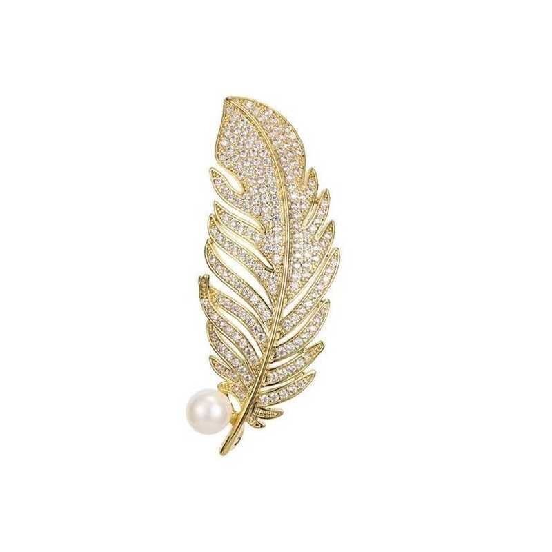 Brož pozlacené pírko se sladkovodní perličkou Gold Troli