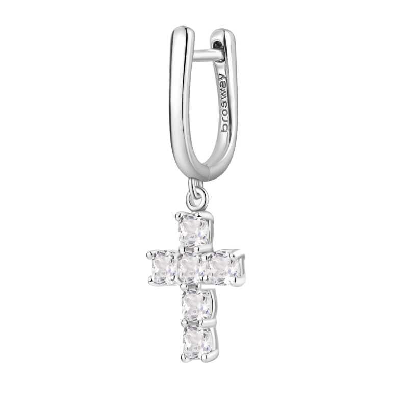 Stříbrná single náušnice Křížek Fancy Infinite White FIW22 Brosway